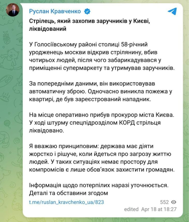 У Києві терорист розстрілював людей посеред вулиці і в маркеті
