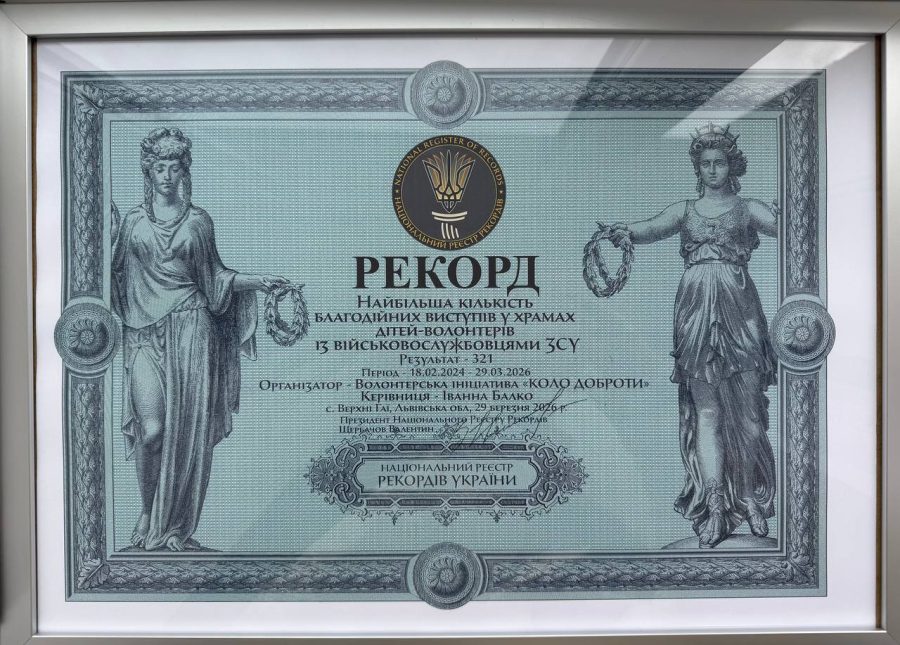 Там зазначили, що представники Національного реєстру рекордів зафіксували досягнення 29 березня. Церемонія нагородження відбулася у храмі села Верхні Гаї, що у Дрогобицькому районі.