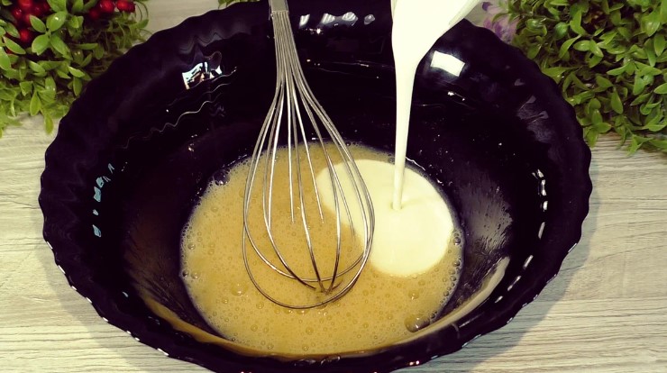 • Виливаю тісто в сковороду, зверху кладу будь-яку начинку, виходить дуже смачно.