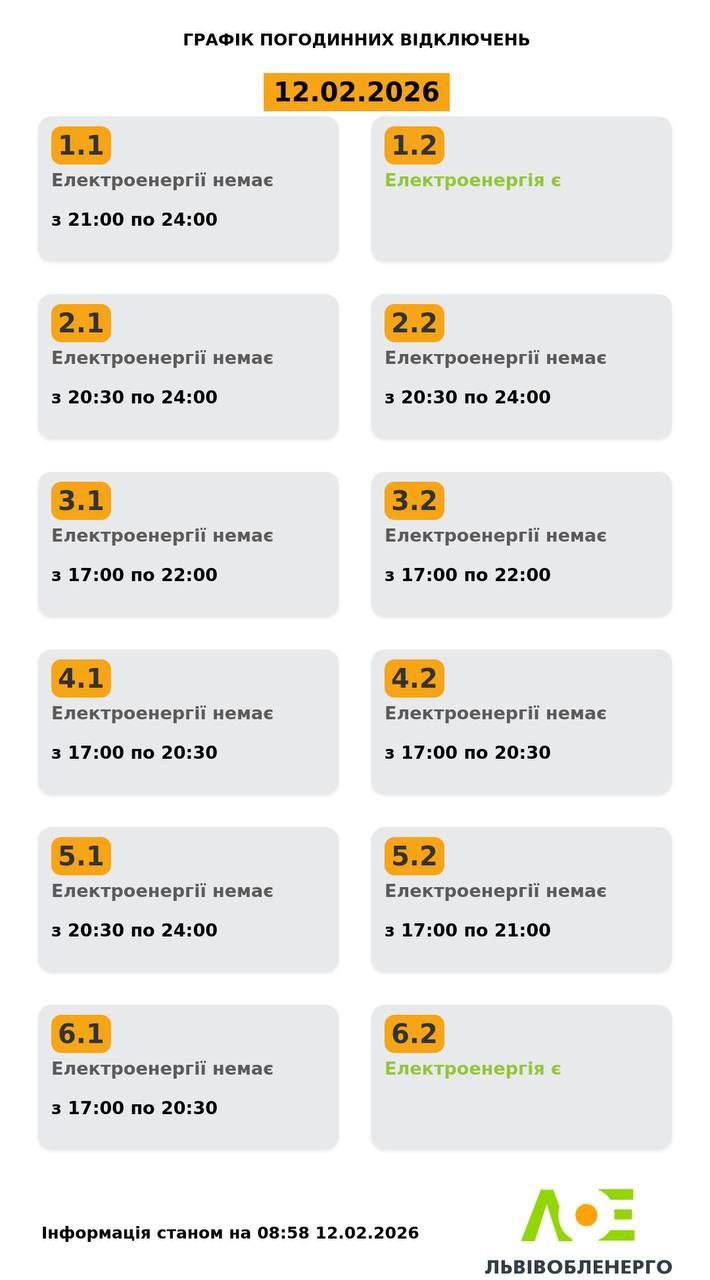 Поділитись У Львові та області оновили графіки вимкнення світла на четвер, 12-го лютого. У кількох групах світло буде до кінця доби, що не може не тішити. В інших групах світло […]
