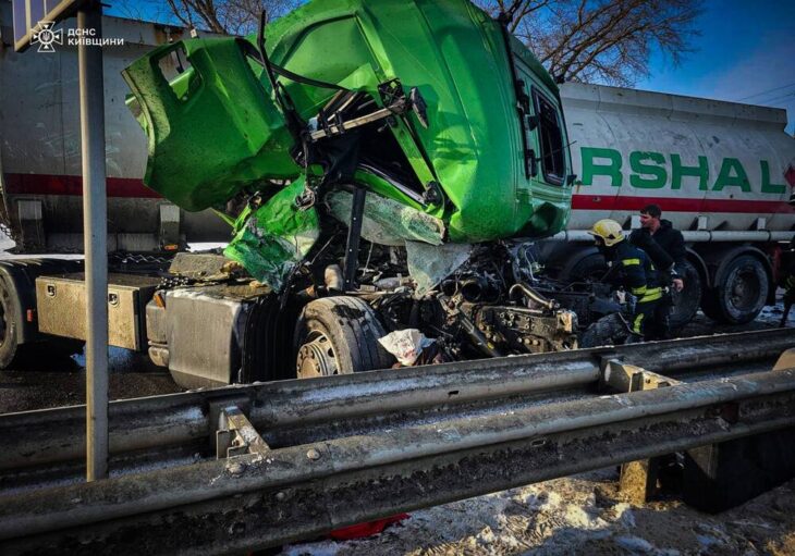 Лобове зіткнення фур на кільцевій під Калинівкою: одна людина загинула, ще одну деблокували з понівеченого авто