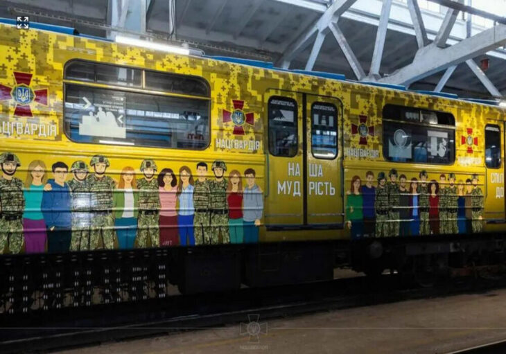 У київському метро з’явився символ мужності та єдності: до 12-річчя Нацгвардії у підземці запустили брендований вагон