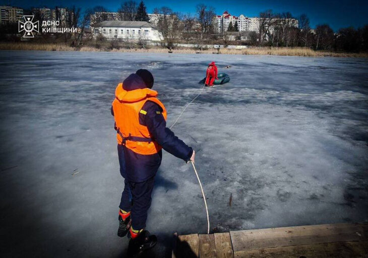 Крижана пастка на Росі: у Білій Церкві рятувальники витягли з-під криги знесиленого собаку