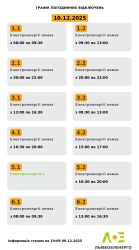 У Львові та області оприлюднили графіки вимкнення електрики по групам на середу, 10-го грудня.
