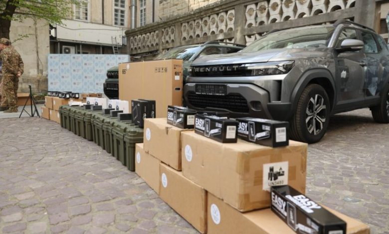 Військовим передали: два автомобілі (кросовери-позашляховики), 150 зарядних пристроїв з акумуляторами, 30 батарей, 10 передавачів керування, п’ять відеоприймачів, а також монітори, штативи, протиударні кейси та інтерактивну панель.