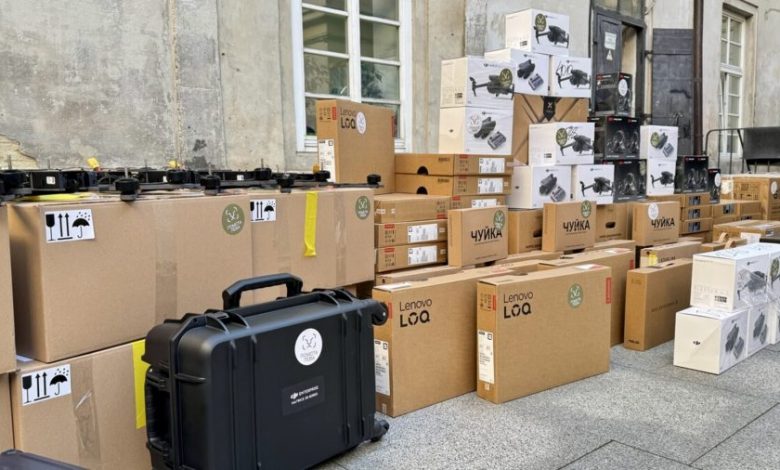 Цього разу військовим передали: автівку, 15 Mavic 3 Pro, 6 старлінків, дрон Matrice 30T, 3 пристрої електронної боротьби РЕБ «Чуйка», 10 Бпла «Shturm-15», 12 Бпла «Shturm-15 R», 3 ангари збірно-розбірні, 3 екофлоу, 2 тепловізійних приціли, 20 пар навушників, 5 системних блоків, 50 ноутбуків, 2 генератори, електро- та зарядна станція.