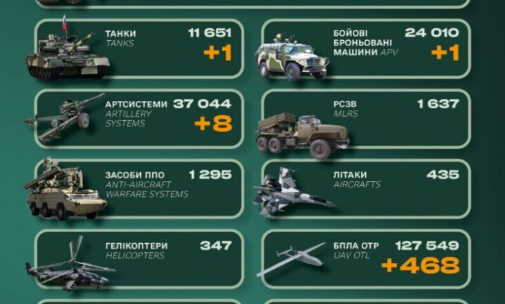 Інфорграфіка за даними Генштабу ЗСУ За минулу добу бойові втрати країни-агресора склали 1040 одиниць особового складу та 8 артилерійських систем. Про це вранці 9 лютого повідомив Генеральний штаб ЗСУ. Загальні […]