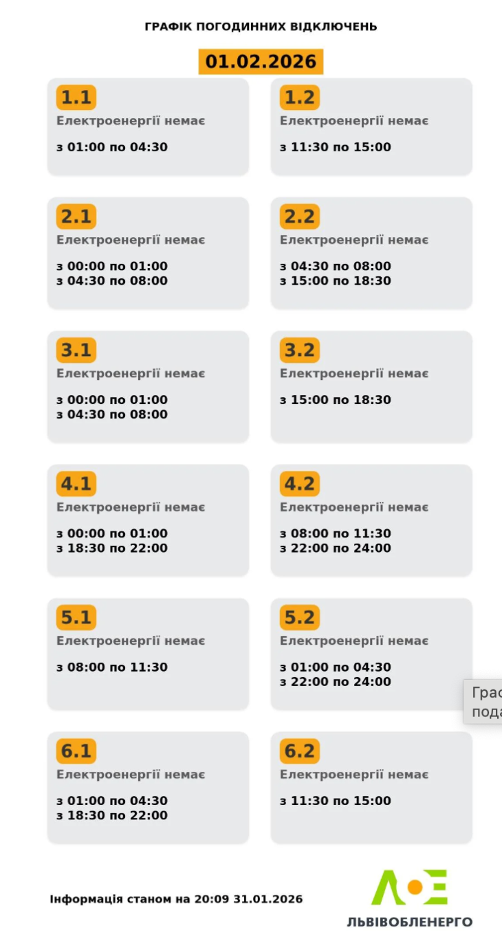 Графіки відключень електроенергії в регіонах на 1 лютого: актуальна інформація