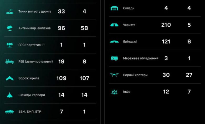 • 153 безпілотні літальні апарати противника типу «коптер» та «крило».