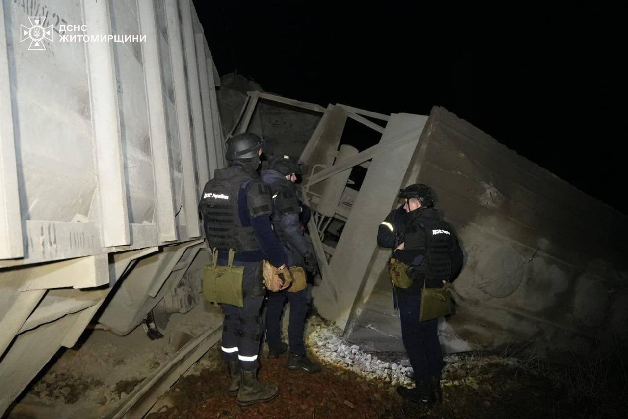 Неподалік Коростеня на Житомирщині з рейок зійшов вантажний поїзд через атаку дрона «Shahed». Постраждали четверо працівників «Укрзалізниці».