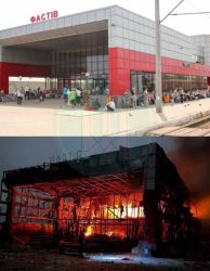 У місті Фастів виникли пожежі та руйнація на території залізничного вокзалу та моторно – вагонного депо. У соцмережах вже викладено фото майже вщент знищеного вокзалу після пожежі.