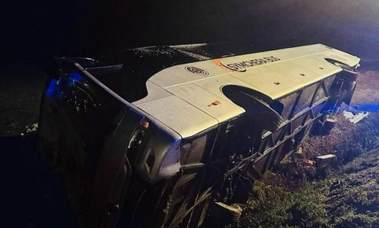 «Через несприятливі погодні умови автобус з’їхав з дороги та перекинувся на бік. В автобусі перебувало 10 пасажирів та двоє водіїв, усі – громадяни України», – кажуть у МЗС України.