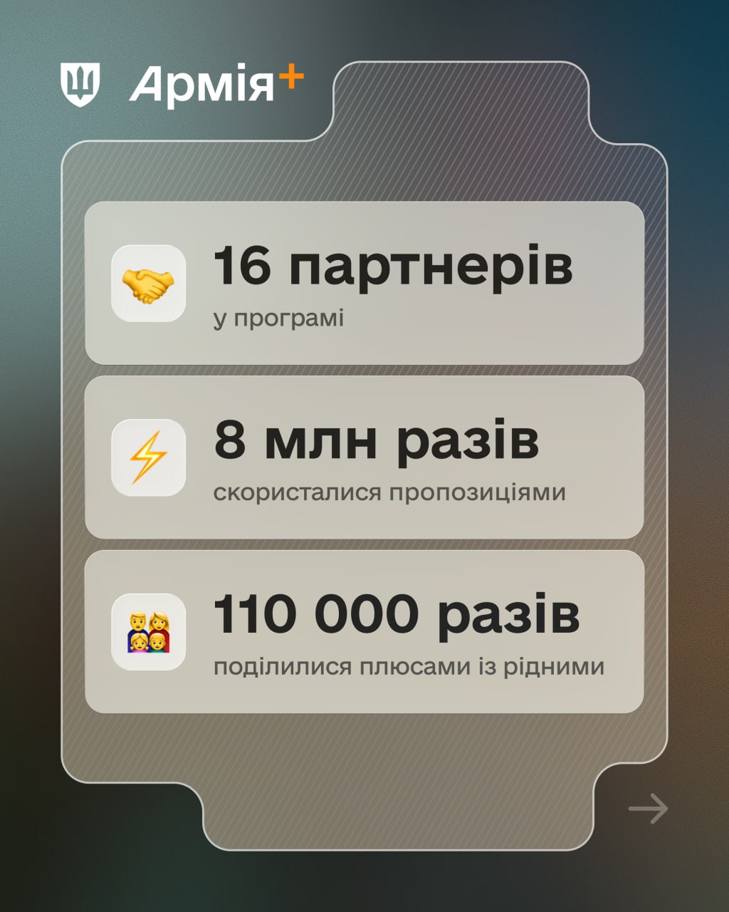 При цьому Плюсами користуються не лише самі військові — вони активно діляться доступними пропозиціями з рідними, що відбувалося понад 110 тисяч разів.